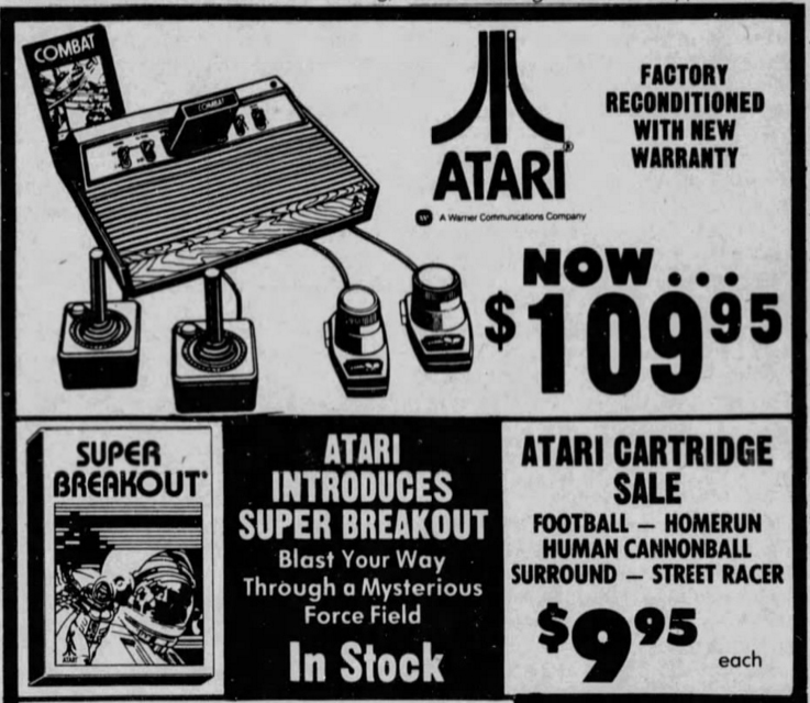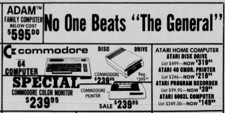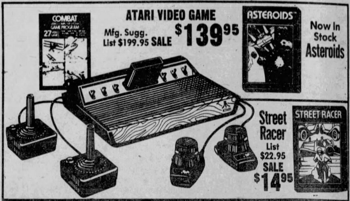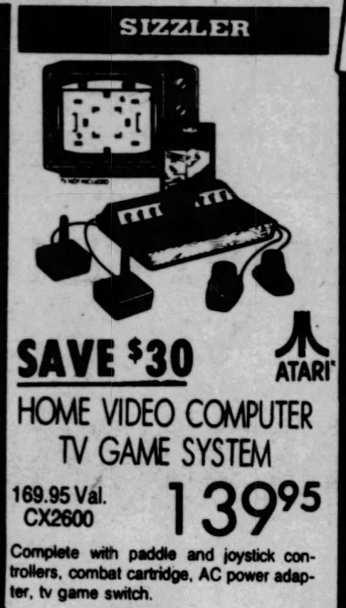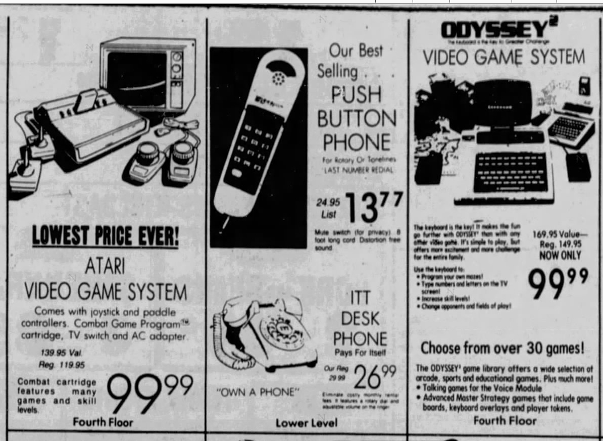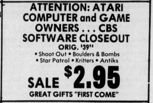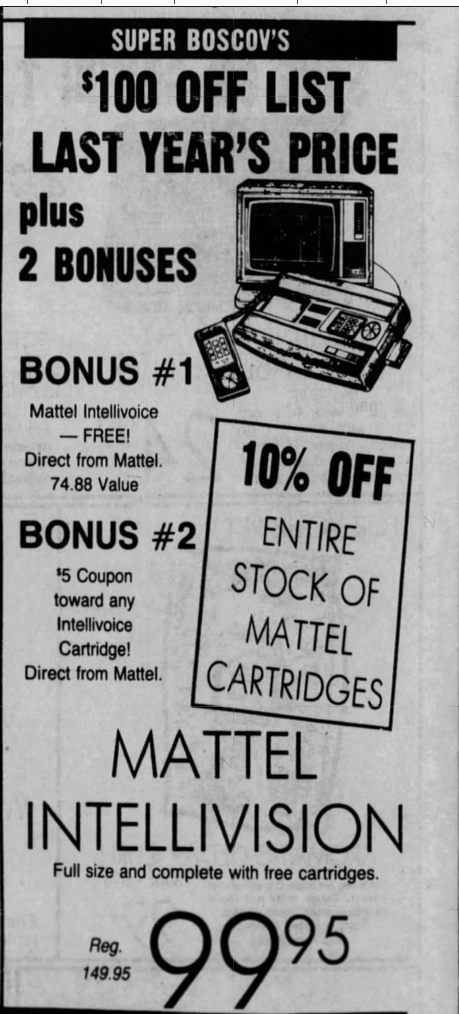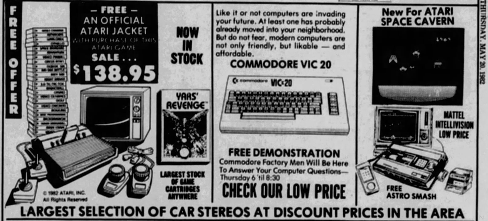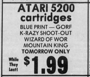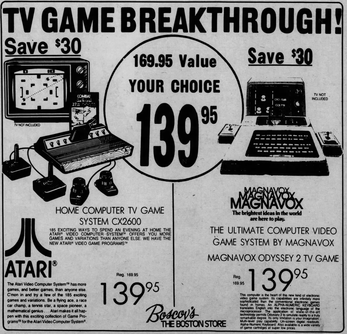 Thanks to the online archive Newspapers.com, an increasing number of newspaper archives that were previously only available on microfilm in select libraries are being scanned and digitized and made available online. The site recently added 1 of 2 local newspapers in my area, The Citizens' Voice, and I recently completed collecting every ad featuring Atari's systems and games from it. I've chosen all the Atari ads that ran between 1980 and 1984 from the 2 stores in my area that were *the* places to find the latest games, and who offered the largest selection of games - Boscov's and General Radio. Boscov's is a chain department store, and the location near me, in Wilkes-Barre, PA, was originally known as The Boston Store until it was purchased by Al Boscov. General Radio was an appliance store for large items like refrigerators, washers/dryers, and TVs, and was located a few blocks away on the same street as Boscov's. Both were quite aggressive in their advertising, and Boscov's in particular promoted Atari high score competitions in their stores and even sponsored a parade celebrating the release of Atari's VCS Pac-Man, and a visit from Pac-Man himself! These ads also serve to help determine more accurate release dates for games, as well as reveal the immediate effects of the market's crash as is unfolded over the last 18 months of Atari, Inc.'s existence.