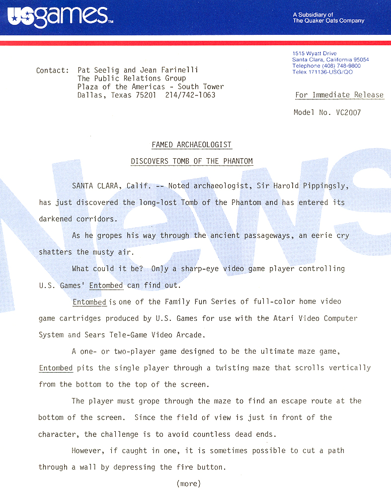 An interview with U.S. Games programmer Paul Allen Newell can be found HERE.