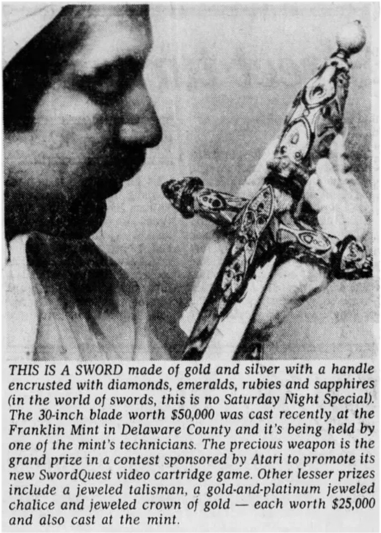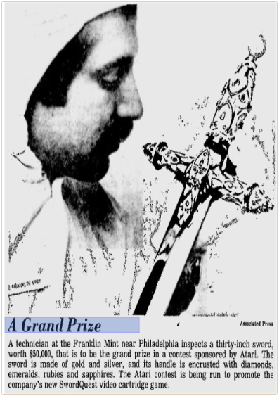 The series was to culminate in 1984 with the winner from each of the 4 contests facing off for the grand prize: the $50,000 SwordQuest Sword. From Howard Scott Warshaw: