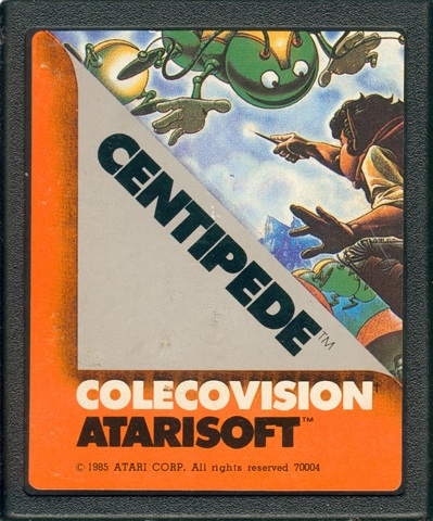 ► Centipede – The 1985 re-release has an orange label instead of the traditional red (of this label style), along with a different (slightly larger) font. The origin of this was a rare misprint that was released in 1985 with the same label style used for the Colecovision version.