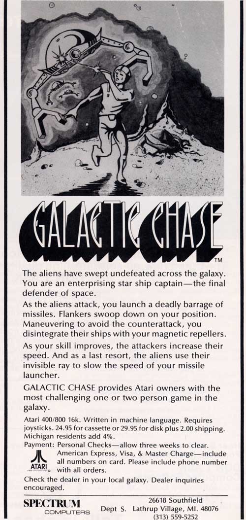 Galactic Chase | Atari 400/800 | Spectrum Computers (STEDEK Software) | released |