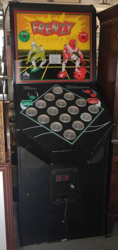 Frenzy was a coin-op game that consisted of a matrix of 4x4 lighted buttons. Two buttons at random would light up and the player had to press the lighted buttons before time ran out. It was kind of like Milton Bradley's Simon and was meant for the arcade (Ed.: Simon was based on Atari's Touch Me arcade game). I wrote the ticket kicker, Pete built the hardware, and Steve wrote most of the