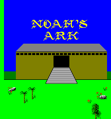 Arkyology is a 1-player, 1 screen game that based on events in the life of the biblical character Noah. There are 2 parts to each 'day' in the game. The first involves running around the 3-level ark and grabbing levers to open up doors to the animal stalls. Ladders connect each floor, and at the top of each ladder is a tube that you can safely hide in. Once that's completed, you have to run around and feed all the various animals.