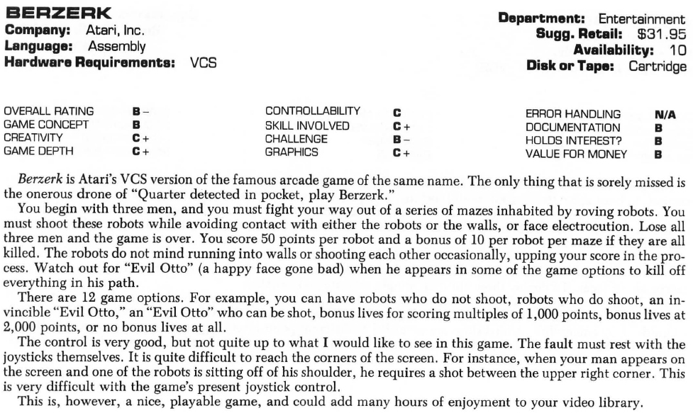 By Perry Greenberg (Video Games February 1983 pg 80)