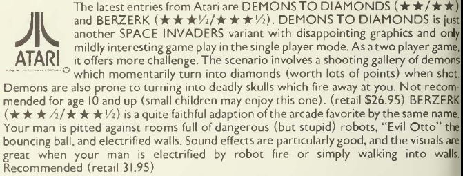 By Arnie Katz and Bill Kunkel (Electronic Games January 1983, pg 45,122)