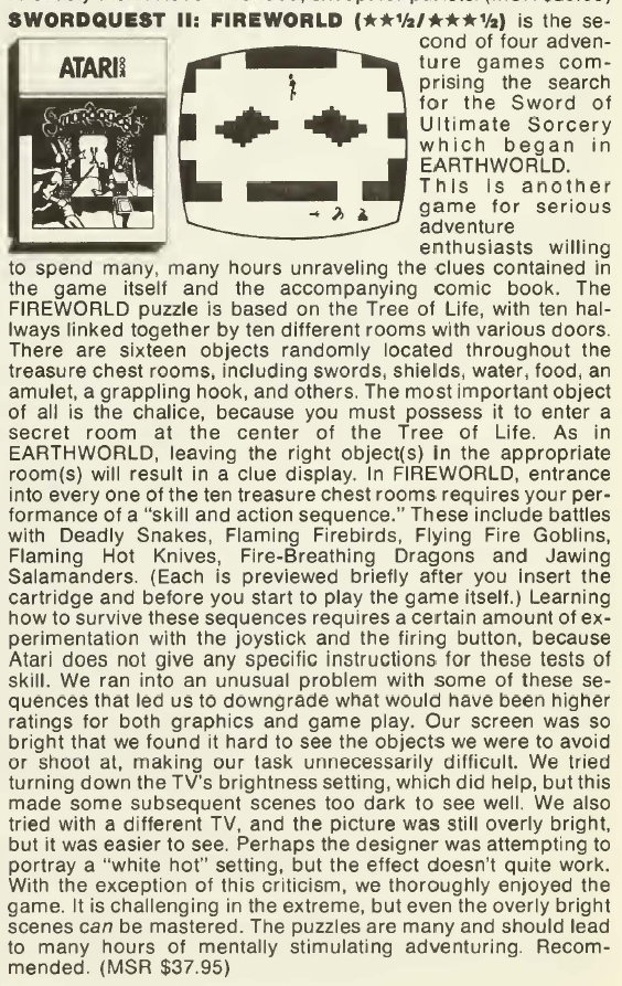 It's clear the reviewer didn't even see FireWorld let alone play it, especially since the game wasn't released until February 1983.