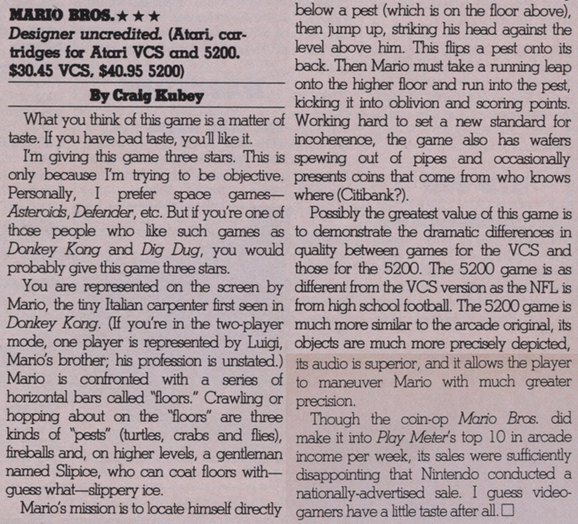 By Craig Kubey (Video Review February 1984 pg 94, 95)