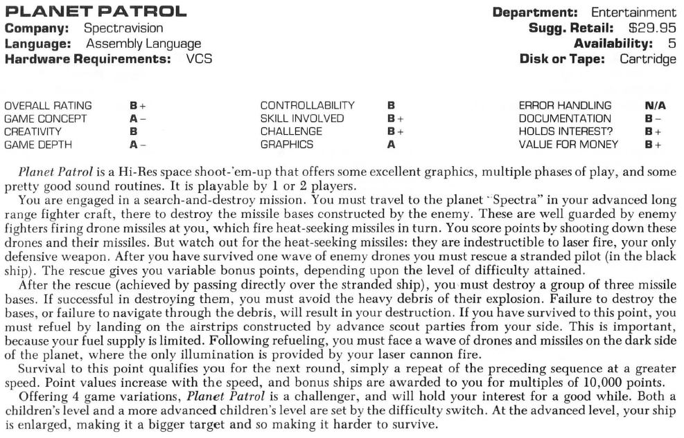 By Arnie Katz and Bill Kunkel (Electronic Games November 1982 pg 30,32)
