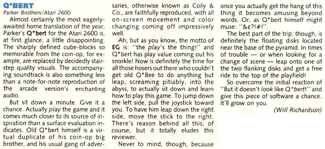 By Will Richardson (Electronic Games January 1984, pg 102)