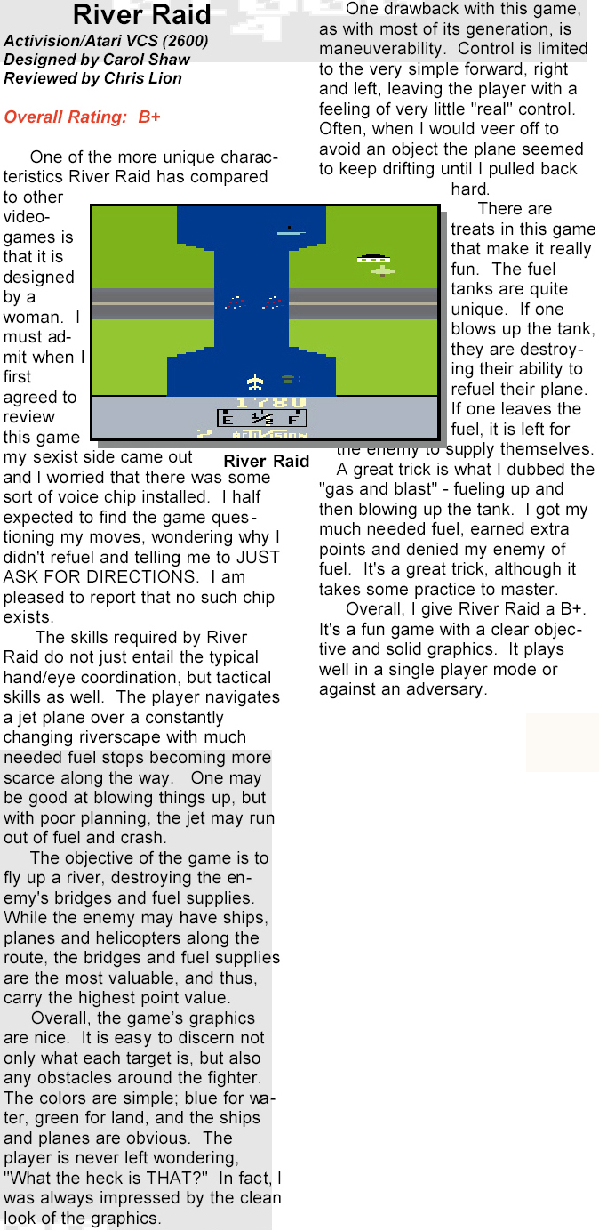 By Chris Lion (Classic Gamer Magazine Fall 1999 pg 24)