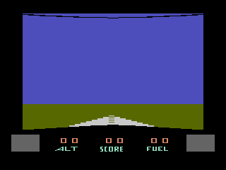 This is a cool arcade flight combat game. Handles really good, controls are tight. It’s a one player game. Hit select switch to cycle between land and sea missions. Once you take off, you take on both ground and air targets. You can see your bullets rip into enemies. Planes not only come straight at you, but also zoom across the screen. There are ground targets you can engage, tanks, factories, ground to air missiles, ships, etc. When you see the landing strip on the ground (or in the sea missions, a carrier) head right for it and you can land to refuel and repair your jet. The next level begins over new territory, terrain changes and ground enemies can fire at you. You have a small HUD that shows Altitude, Score and Fuel. Warning lights on the left and right side of the HUD flash and sound off when necessary, i.e. if you get too low in altitude and might crash, or if your fuel gets below 20 units or when your jet takes on too much damage. Enemy hits show on your cockpit glass. If you crash, the screen turns black and you can replay that mission, if you have remaining jets. When the game ends, you get ranked, "Crew, Pilot, Ace" and rated "0-9". Good game play, sound is above par, graphics are solid. Has a good replay value.