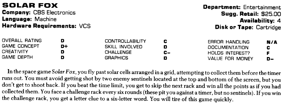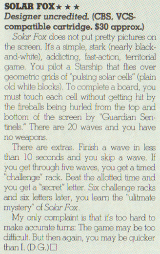 By Dan Persons (Video Games October 1983 pg 64)