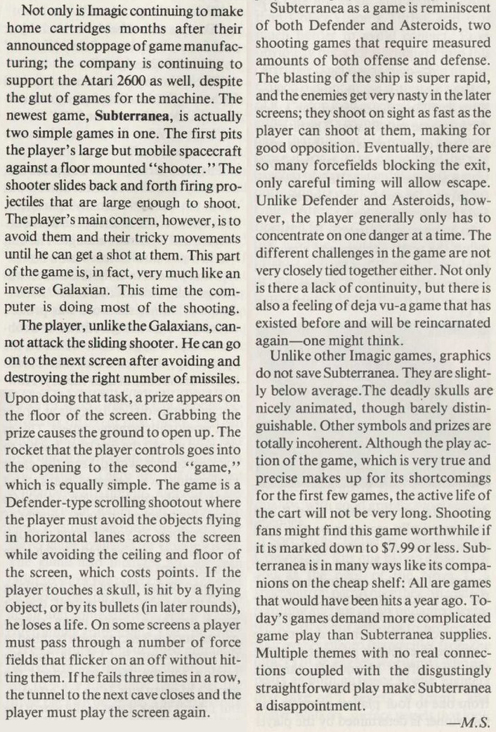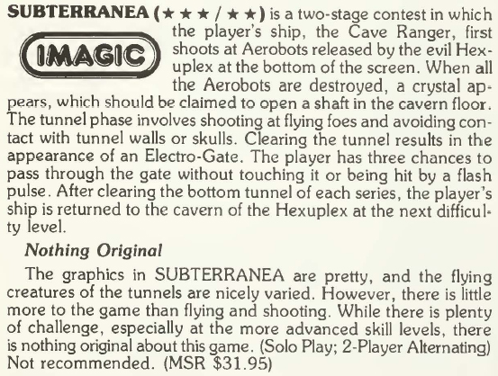 By Ted Salamone (Electronic Games July 1984, pg 72)