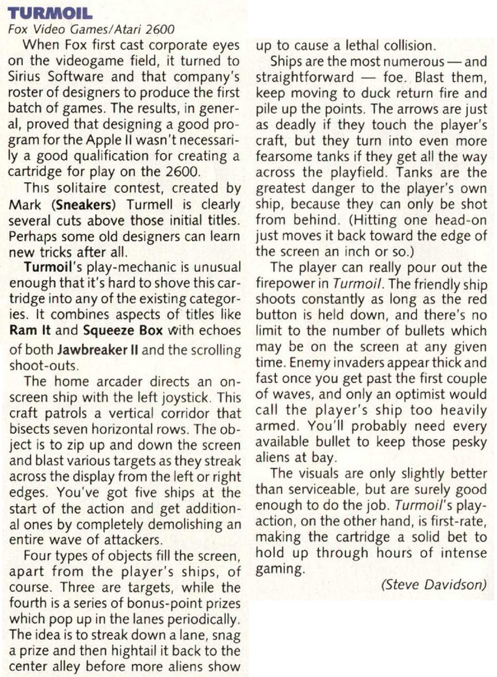 By Steve Davidson (Electronic Games November 1983 pg 84)