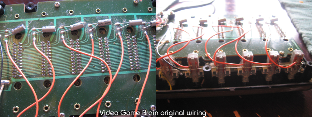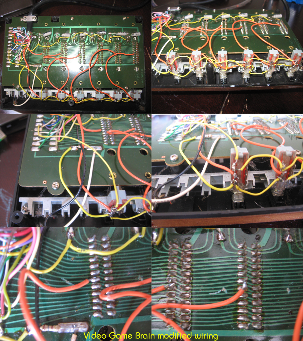 A: The Video Game Brain is notable for having a design flaw that can potentially damage cartridges. When a cart is not selected, voltage is still running through the address and data lines while the power pin is floating, which chips are not designed for. This can result in damage to games, the system, or both. It's possible to modify the unit by re-wiring the switches to run the GND or A12 connector from the system to the appropriate pin on the cart port. The following photos show the pcb how it was wired both before and after the modification. NOTE: the fat traces on the pcb are NOT grounds! The yellow wire on the middle terminal of the switch was the +5v power connection. This wire was removed, as was the unsheathed wire through all of the middle terminals of all switches.