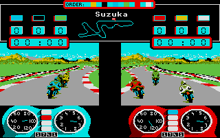 | Superbike Challenge (Brøderbund Software 1987) | Hang-On (Sega 1985) |