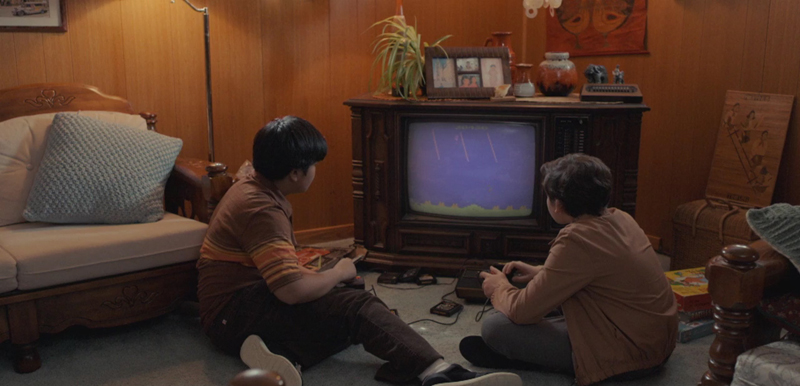 There's a scene where a boy is playing a GameBoy, but the sounds of VCS Pac-Man