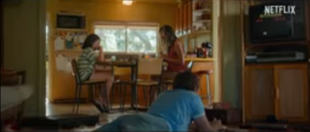 There is a scene where they are visiting at Burt's mother's house. When they try to get to sleep his nephews jump on their fold out couch and start playing