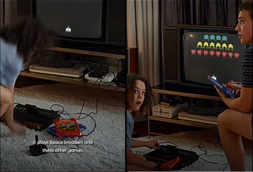 Atari VCS controllers are shown, and what might be VCS Millipede is heard