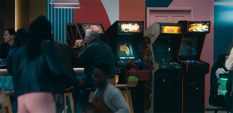 There's an arcade scene with 720, 1942, Asteroids Deluxe,
