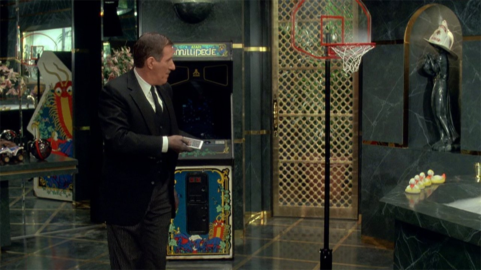 Another Leslie Nielsen comedy with an Atari VCS game in the mix, which has Nielsen playing an upside-down Space Invaders.