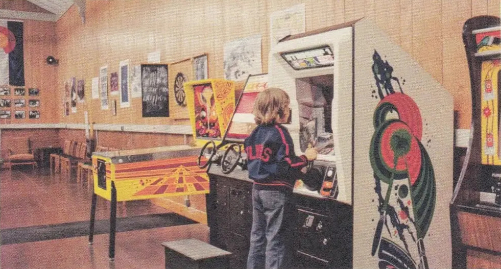 Bear) and glimpses of video games like Asteroids, Galaxian, Sea Wolf,