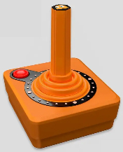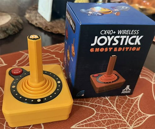 Edition - CLYDE" Same as the wireless controller for the 2600+ system, and with the same stiffness problem, but a colored variation with the added detail of a decal on top of the joystick. This one features a Clyde icon. A manufacturing error with this particular variation had joysticks shipped in a color closer to yellow instead of orange. Retail price $39.99. |