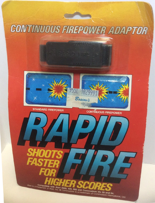 - RGA-1190 Rapid-fire module that connects between the joystick and the console and operates at a pre-set rate. Looks like a knock-off of Discwasher's PointMaster Fire Control module. Made in Hong Kong. |