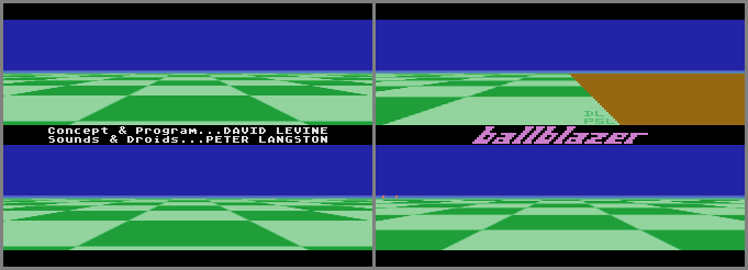 • A prototype version, dated 1-20-84, exists with the name on the standard title screen, as well as some text differences with the title screen credits (“A LUCASFILM LTD PRODUCTION Copyright (c) 1984 Lucasfilm Ltd Certified for Regulation Play INTERPLANETARY BALLBLAZER ASSOCIATION”).