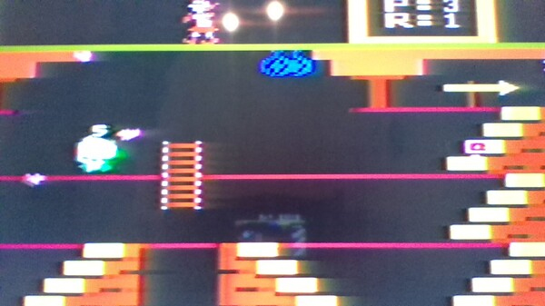 • BUG: At the start of the game, Brutus will walk over to the left, go down the steps, and walk over to the right and stop right under the ladder and look around. If you go down the ladder just as he starts looking around, you can touch him without being killed (picture #7). As soon as he stops looking around, if you’re touching him, you’ll die. {Scott Stilphen}