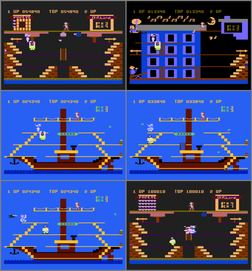 • BUG: Sometimes Popeye will appear twice as large when you grab the last item, or if you grab the last item while simultaneously touching Bluto (picture #6).