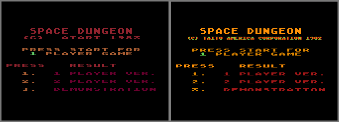 • A prototype version exists, dated 10-12-83, that says "(c) Atari 1983" on the title screen (picture #1), instead of "(c) Taito of America Corporation 1981" (picture #2), along with a few other minor differences.