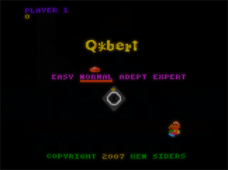 • According to programmer Ken Siders, a hidden feature using the PAUSE button changes the title screen to Q*bert (picture #1). From Siders: "When you are turning the 7800 on, if you pause to think about it a little, then once you start a game, if you do the right thing, it should not be too difficult to make a change."