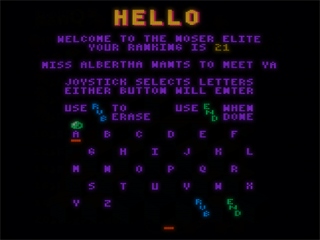 • Hold PAUSE and RESET when powering up game. Coily will turn into a new character called Al*bertha. Al*bertha is homage to Q*bertha from FHMC Q*bert. Q*Bertha can flip cube colors back and fix cubes that have been turned into rainbow cubes.