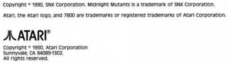 • BUG: The manual states the title is a trademark of SNK Corporation and has a 1990 copyright date for it (picture #2), although SNK never released a Midnight Mutants game.