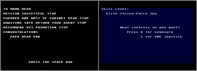 • The manual mentions there are 5 ranks but lists only the first 4. The mystery rank is Elite Strike Force Spy (picture #2). If you complete the game at this level, the rank remains the same (even though the same message about getting a promotion appears).