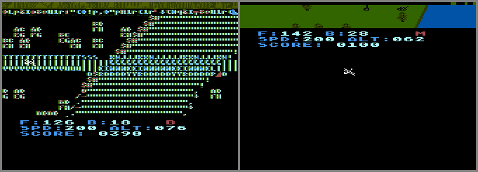 • BUG: The manual warns you not to bomb friendly hangars (i.e. yours). Doing so will cause the graphics to glitch (pictures #1 and #2), or sometimes will crash the game altogether.