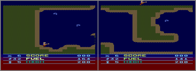 • BUG: If you place your character so that the back of your legs line up against a bottom corner (picture #1) and then pull DOWN, you’ll fall through the bottom border and be able to move around in the green area outside the cavern, and even in the top border area (picture #2)! {John Hardie}