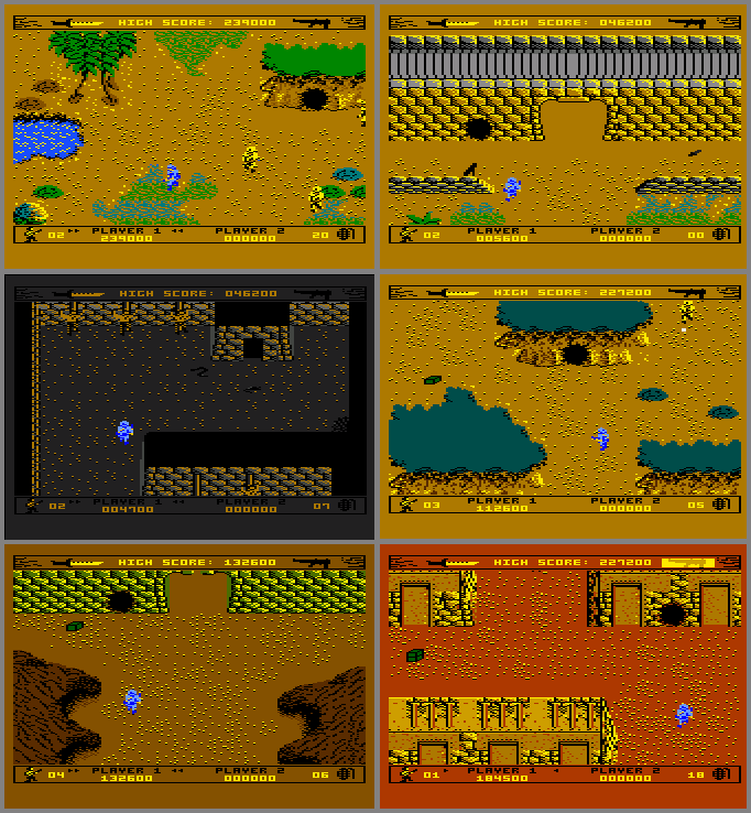• Secret areas: Throwing grenades at specific areas will blast open a hole that leads to a hidden area where you’ll find 4 prisoners. Each GI you rescue is worth 2,000 points! There’s believed to be 8 hidden bonus areas to find, across the 8 different levels. So far only 5 have been found:
