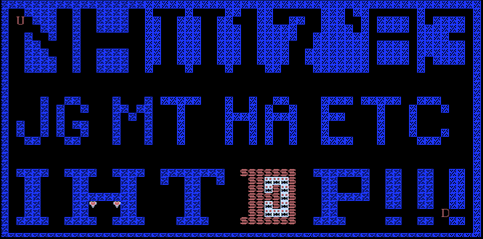 HIDDEN MESSAGE: Level N is comprised of a cryptic message of sorts (picture #2). NHII stands for New House II, the dormitory at MIT where programmer John Howard Palevich stayed. JG stands for Joel Gluck, who Palevich thanked for his suggestions in the manual. MT and HA are possibly the initials for other students. {Scott Stilphen}