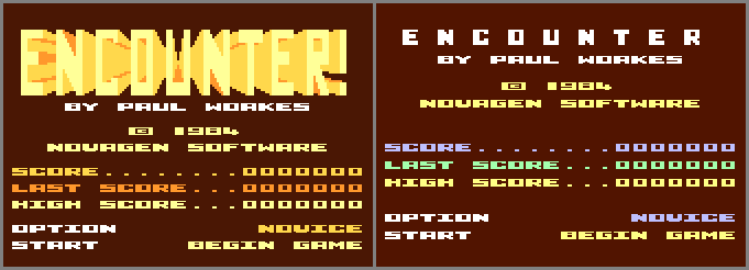 • 3 different versions exist. The game was originally released by Synapse, and later re-released by Novagen and Atlantis, resulting in 3 different title screens (pictures #1 - #3).