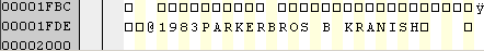 • HIDDEN MESSAGE: “@1983 PARKERBROS B KRANISH” (for programmer Steve Kranish) can be found at the very end of the compiled code listing (picture #1). {Scott Stilphen}