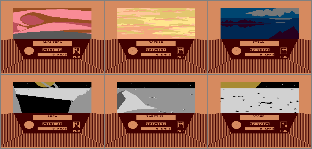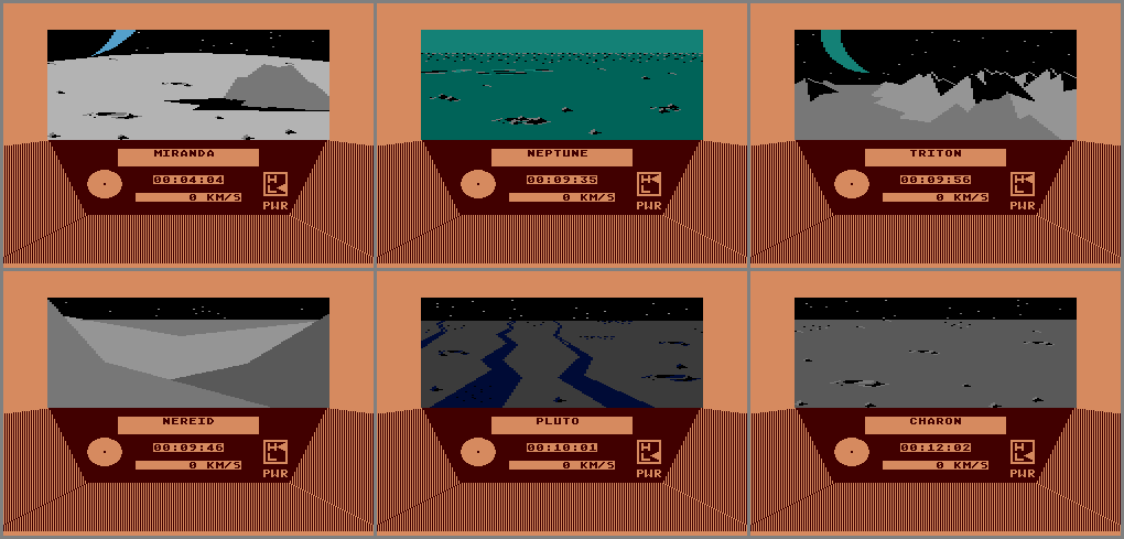 • There are a total of 30 different objects (not including Halley’s comet) that you can go to and land (pictures #1 - #30). The hardest one to locate is Neptune’s moon, Iepetus, as it’s located some 5.5 million kilometers from Neptune.