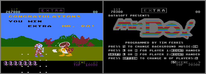 • BUG: If one of the monsters is near the bottom of the screen and changes to a digging monster, it might dig down through the bottom of the screen! A pair of numbers (“65” or “00” will then appear where it dug through (picture #2). Graphics glitches will appear on the ‘Well Done’ and ‘Extra Mr. Do!’ animation screens, with the latter sometimes crashing the game.