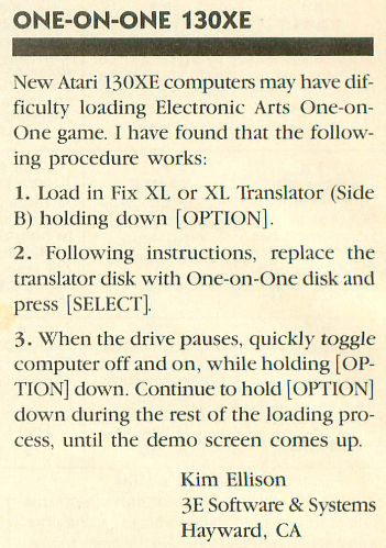 • BUG: A letter in the September 1985 issue of Antic magazine (page 8, see picture) notes the game isn't compatible with the 130XE without the use of Atari's Translator disks.