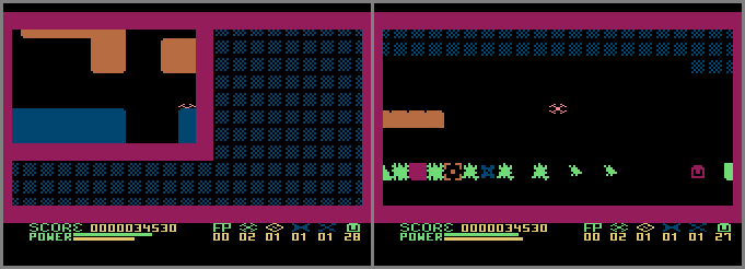 • BUG: It’s possible to break through the outer boundary. First, find a piece of inner barrier that’s in contact with the outer barrier. Next, move the pathfinder horizontally along the edge of an inner barrier so that you’re partially behind it (picture #1 and video). When you reach the outer barrier, move in the opposite (and diagonal) direction. For example, if moving right towards the outer barrier, move left+down when you’re touching the outer barrier. You’ll then pass right through the outer barrier! From there, you’ll find various graphics and objects scattered outside of the normal playing area (picture #2 and video).