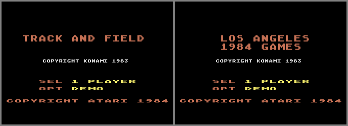• If the cart is used on a PAL machine, the title screen changes to "Los Angeles 1984 Games".