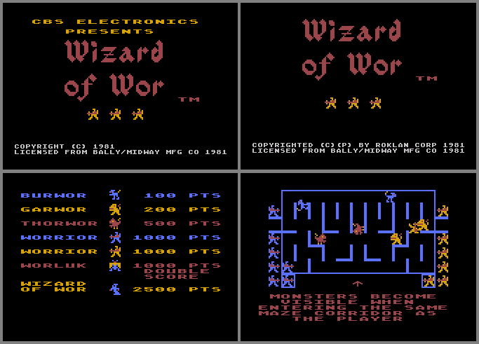 • The 5200 version (picture #1) is basically the 400/800 cassette tape version, whereas the 400/800 disk version (picture #2) included everything. Besides the different copyright info on the title screens, the 5200 version is missing the hall of fame, character list (picture #3), and instructional attract mode (picture #4).