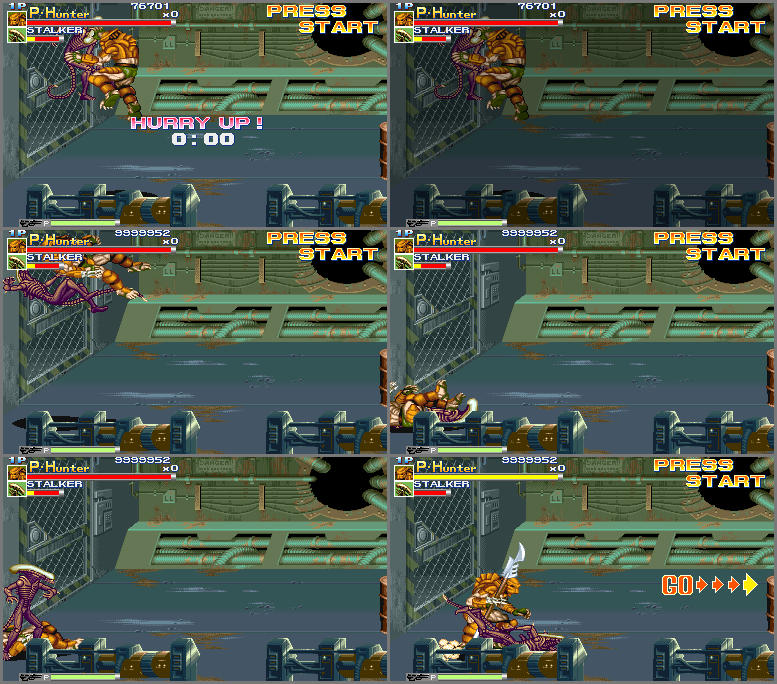 • BUG: If you grab an alien and jump just as the stage times out (pictures #1-#6), you’ll max the score counter (9,999,9XX).