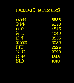 • The default initials on the high score table picture) possibly all stand for Tong Electronic / Pacific Polytechnical employees: TAB – Todd A Blume (developer) PPP – TT – AL – EP – MMM – FFF – KC – CB – SID –